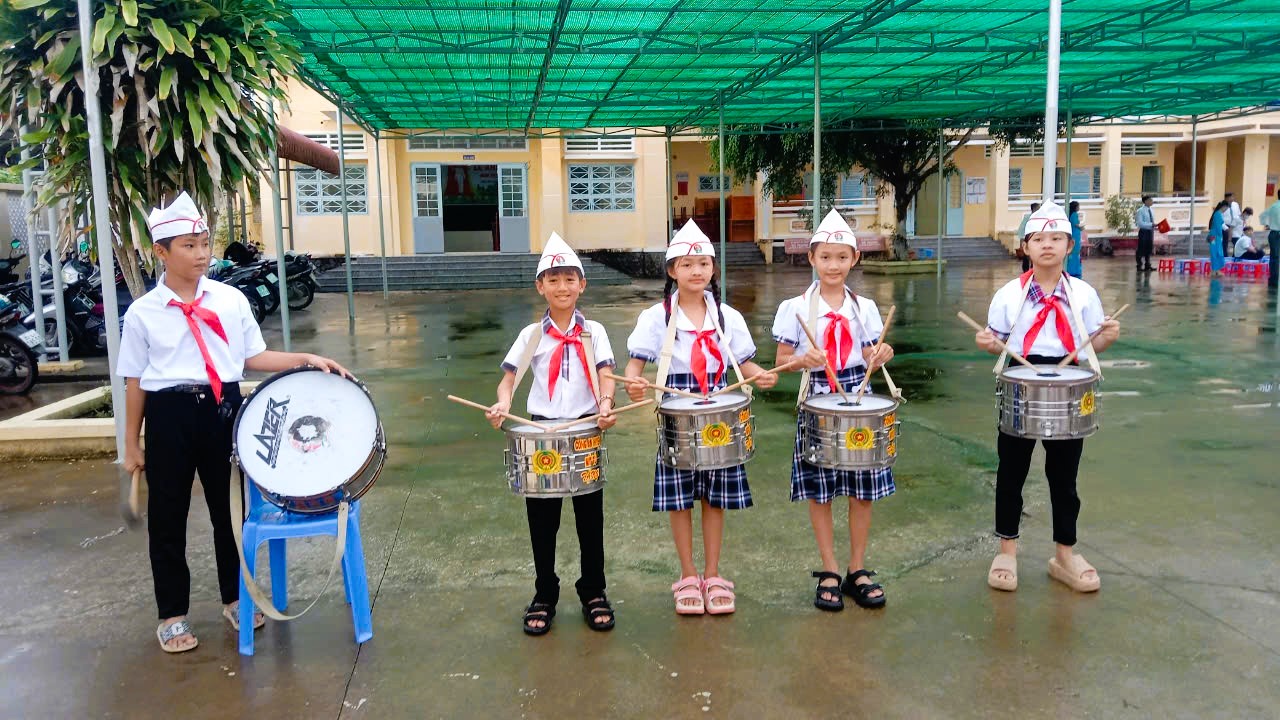 Ảnh: Các em Đội trống trường trước giờ Khai giảng