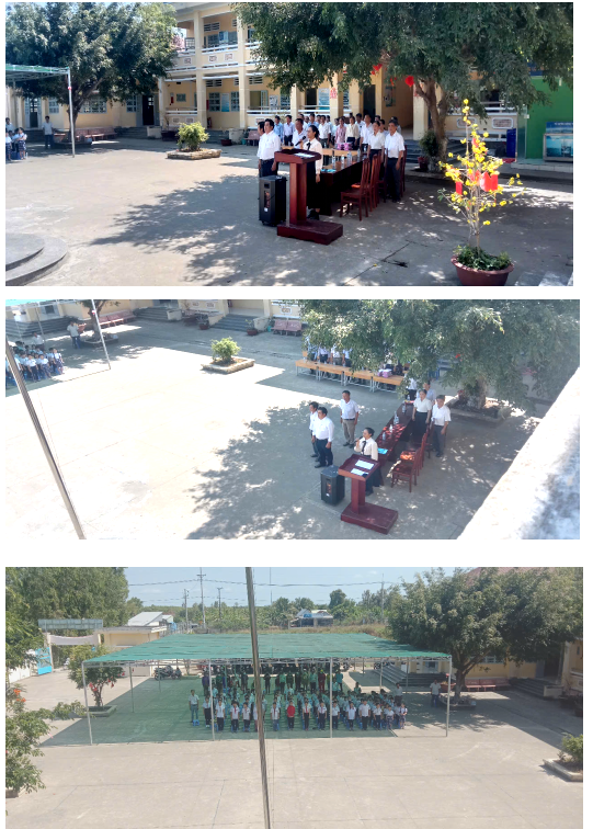 Ảnh Thầy cô và học sinh trường tham dự buổi lễ sơ kết.